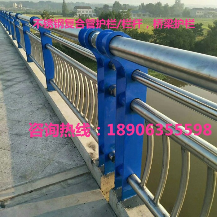 不銹鋼復合管欄桿,它不僅具有不銹鋼管的豪華美觀和現代氣息,又具有普通碳鋼管的堅韌性。是價昂不銹鋼管的替代品,它與鍍鋅噴塑鋼板立柱配合,做成城市、道橋等的安全欄桿。不僅牢固、大方,且可造型各異,是城市景觀護欄的首選。